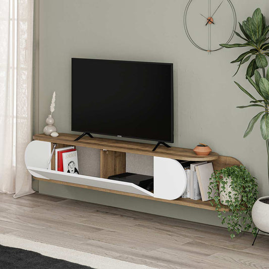 Économisez 26%Meuble TV à design suspendu TONE 180 cm - Noyer et Blanc
