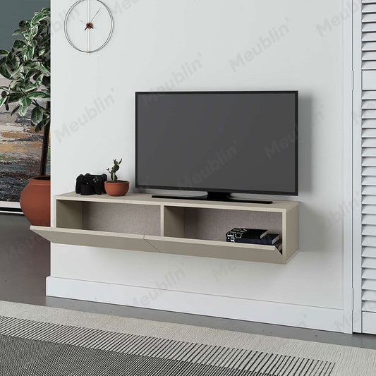 Économisez 16%Meuble TV design mural suspendu FRANCY 135 cm - Beige Taupe