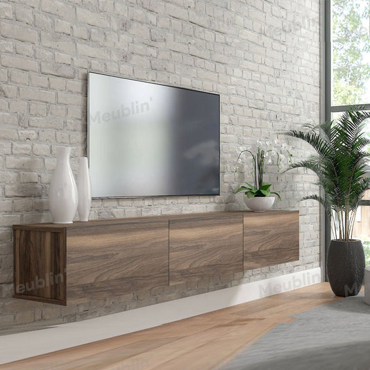 Économisez 29%Meuble TV à design suspendu WALNUT 180 cm - Salon moderne