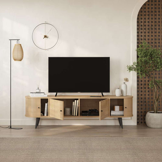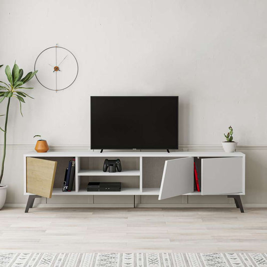 Meuble TV moderne FIONA 180 cm - Salon et séjour - Chêne et blanc