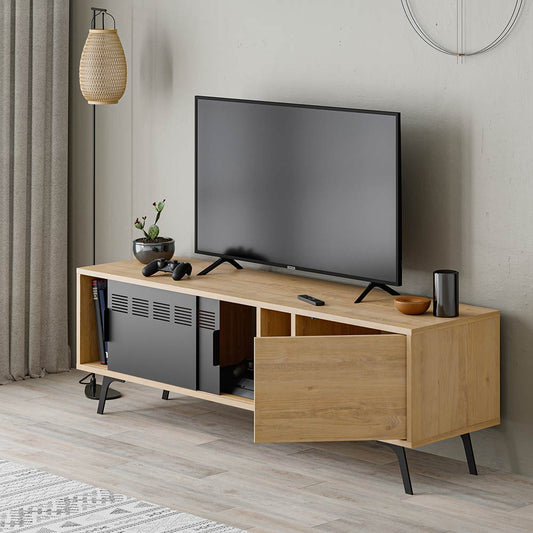 Meuble TV moderne LULIA 148 cm - Chêne et Noir - séjour ou salon