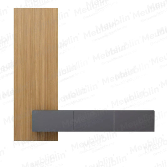 Économisez 28%Meuble TV suspendu 180 cm - Gris - avec Bardage en bois MDF