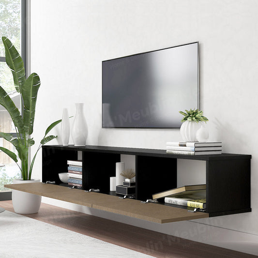 Économisez 22%Meuble TV design suspendu DAMLA 180 cm - Noir YUNUS