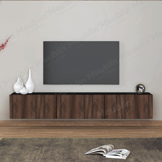 Meuble TV design suspendu AGDAL 180 cm - Noir et Bois Marron Foncé