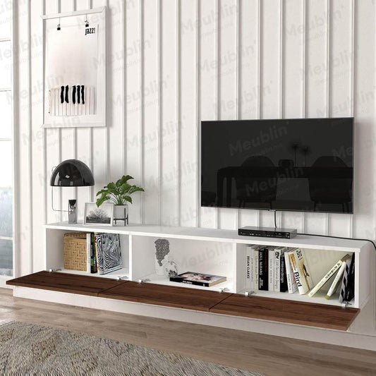 Économisez 20%Meuble TV suspendu 180 cm Blanc - avec Bardage en bois MDF