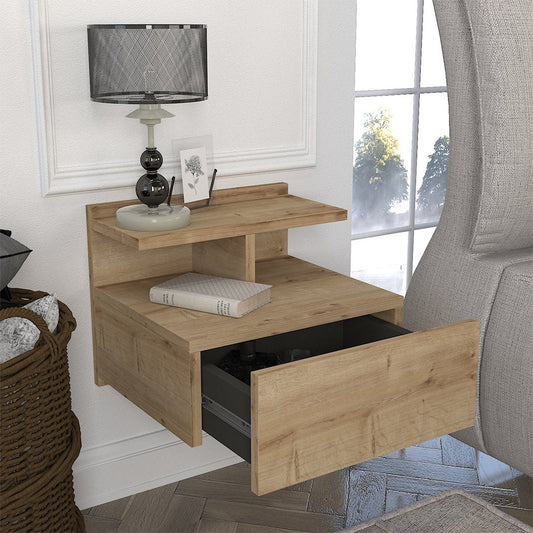 Économisez 25%Table de nuit design suspendu ATUSA chêne à 1 tiroir