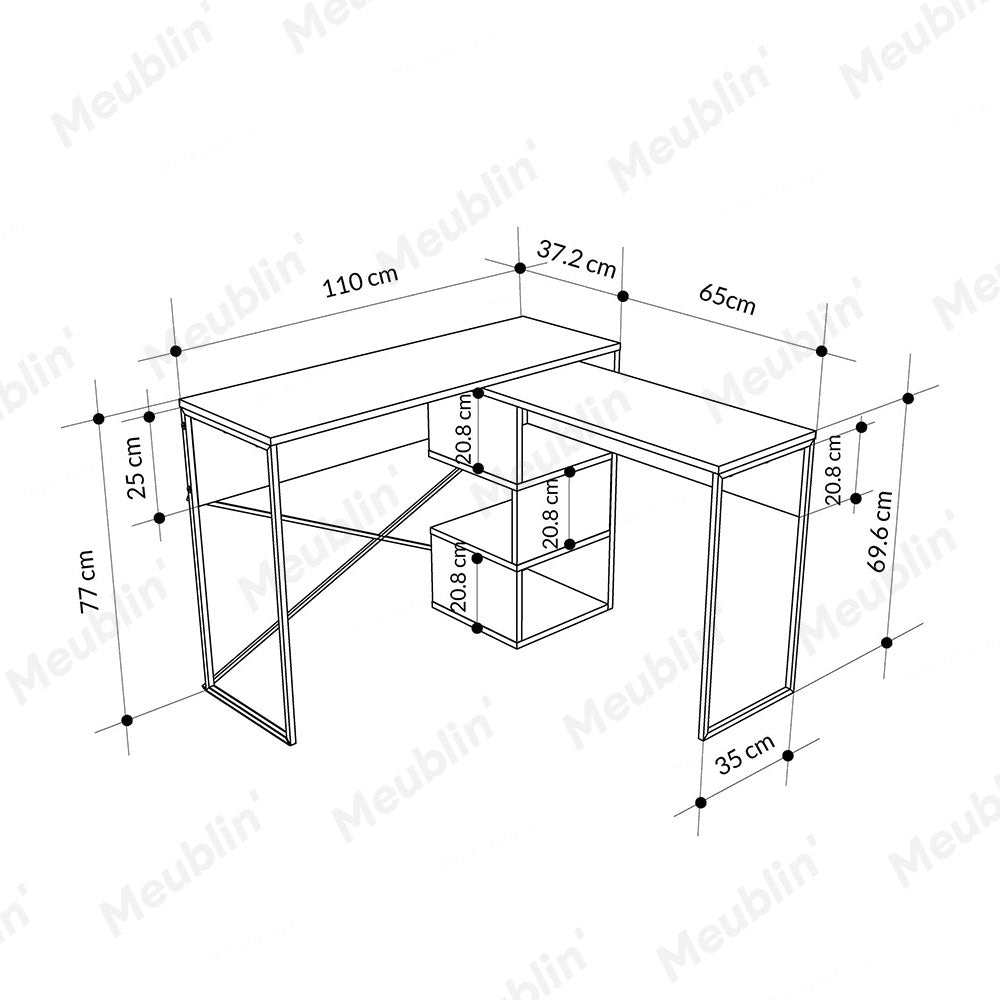 Bureau moderne en bois très solide avec étagères de rangement latérales, et structure en métal noir