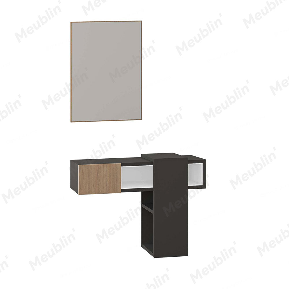Console coiffeuse EFES 100 cm avec miroir - Gris et Chêne