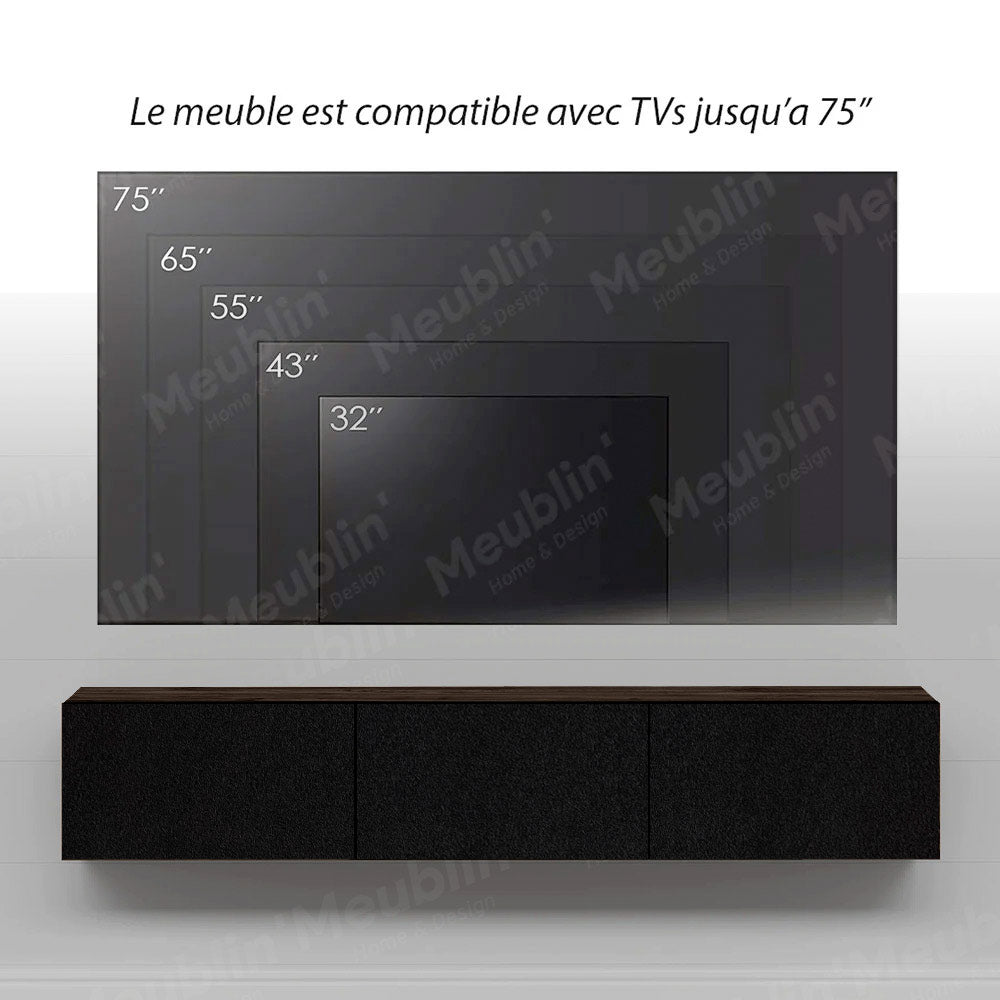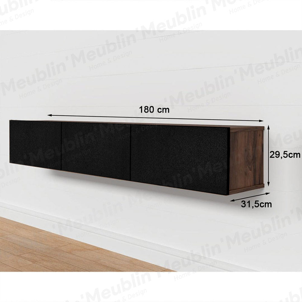 Meuble TV design suspendu AGDAL 180 cm - Marron Foncé et Noir