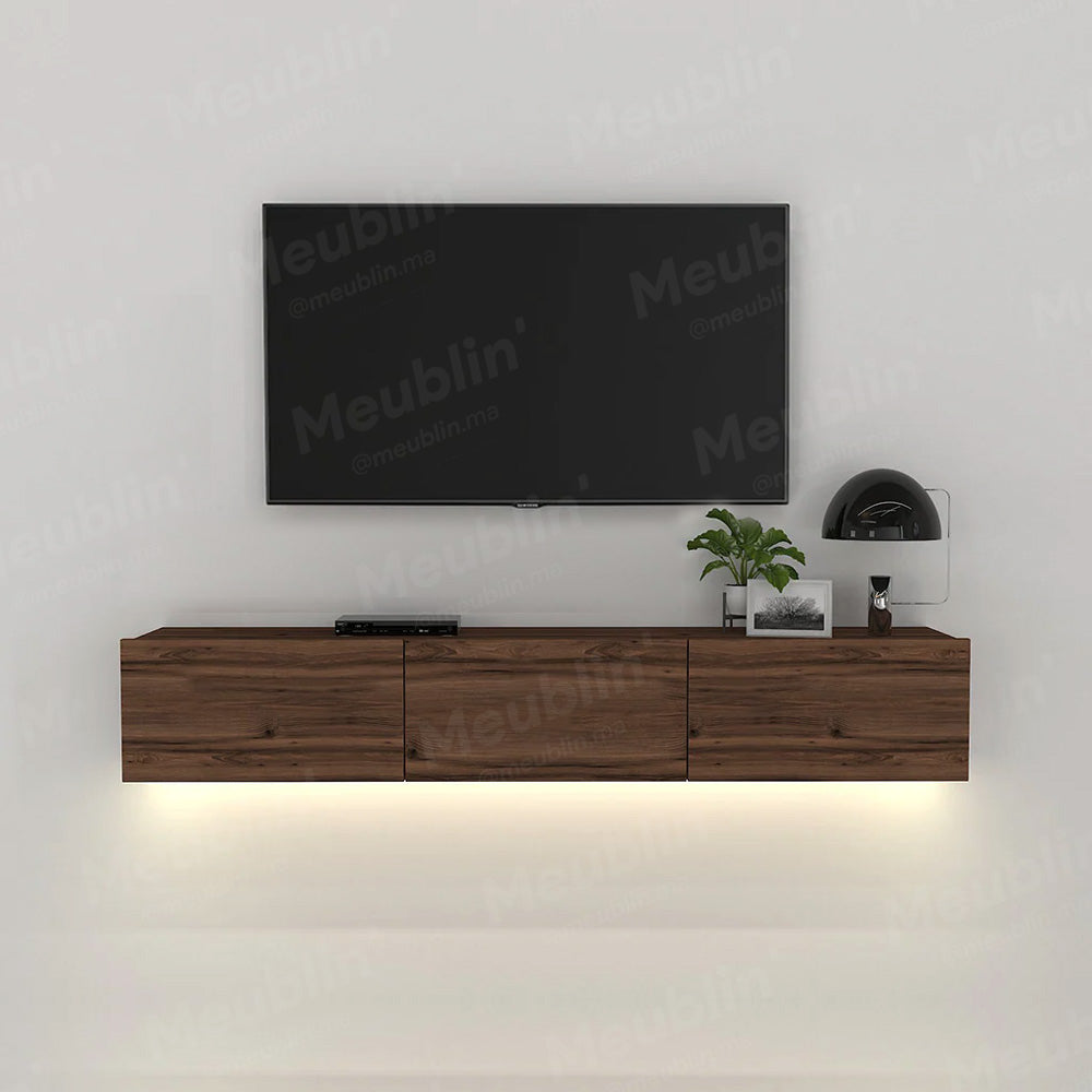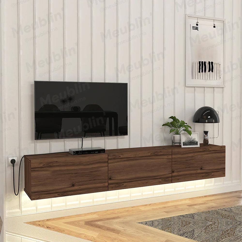 Meuble TV suspendu DAMLA 180 cm avec éclairage LED - Bois Marron Tokap